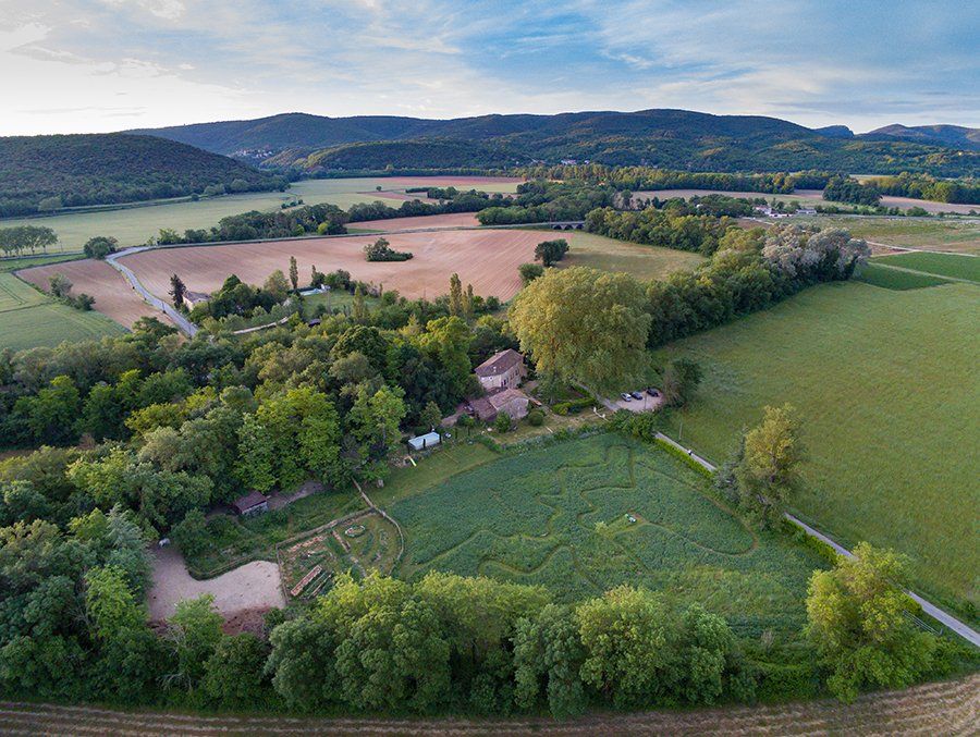 Under remarkable trees and a river at its feet, the mill extends over a property with swimming pool, slide, zip line, cabin, ninja course, swing, pony rides, undergrowth, animals.